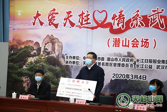 3月4日上午10時(shí),潛山市、武漢市長(zhǎng)江日?qǐng)?bào)長(zhǎng)江公益、青少年發(fā)展基金會(huì)舉行“大愛(ài)天柱·情系武漢”云捐贈(zèng)儀式。天柱山景區(qū)5285880元門票義售善款全部捐贈(zèng)給長(zhǎng)江日?qǐng)?bào)長(zhǎng)江公益、青少年發(fā)展基金會(huì),用于關(guān)愛(ài)武漢戰(zhàn)“疫”醫(yī)護(hù)人員及子女。