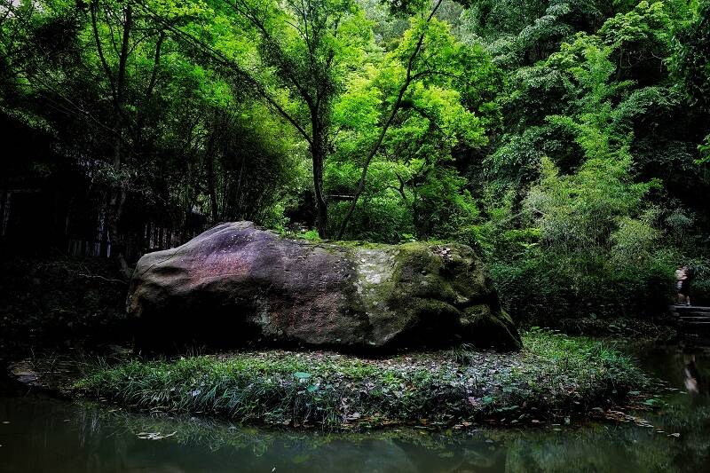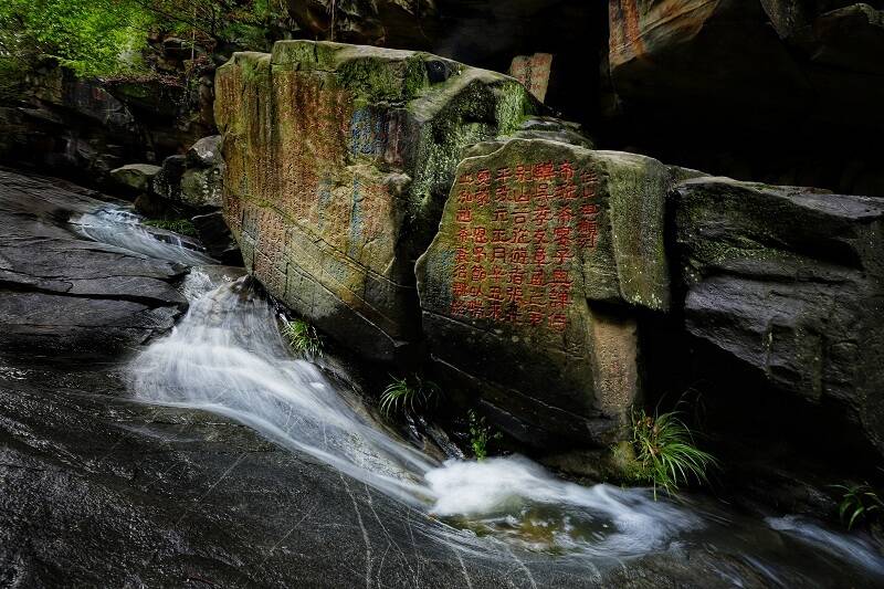 古時,王安石在這里坐石而忘了憂愁,黃庭堅甚至將此視為安身立命之所。蘇軾、朱熹、李公麟等名家或愜意夜游,或吟詩歌賦,留下了400余方縱肆的書法石刻。面對先賢的摩崖石刻,往來喧囂之心會變得安靜和謙卑。這里環(huán)境幽靜、植被茂密、溪水潺潺,是天然的“氧吧”,更是避暑消夏的好“涼”方。