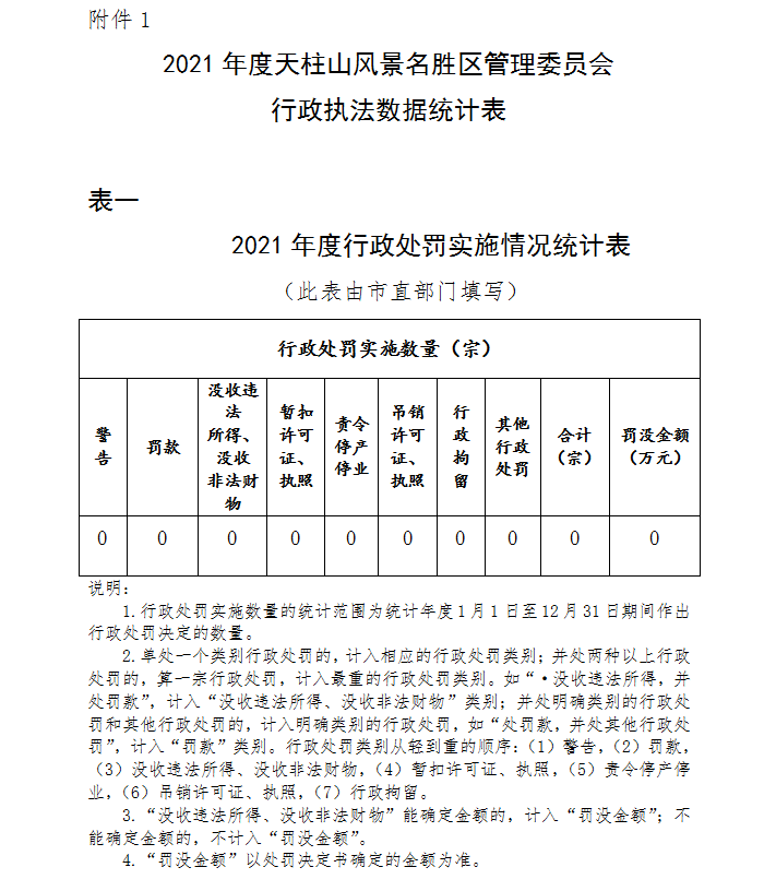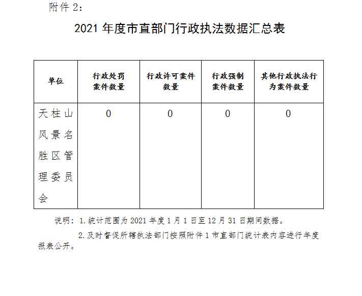 2021年度天柱山風(fēng)景名勝區(qū)管理委員會 行政執(zhí)法數(shù)據(jù)統(tǒng)計表